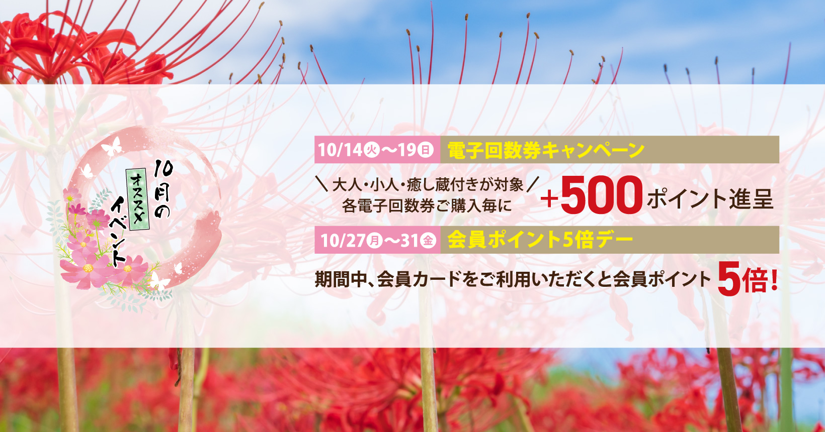 | 2025/11/25 | イベント情報 入浴電子回数券+招待券1枚進呈キャンペーン |