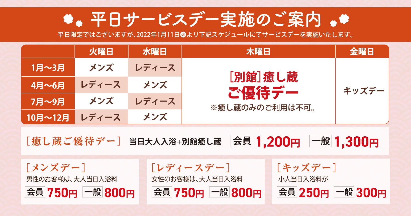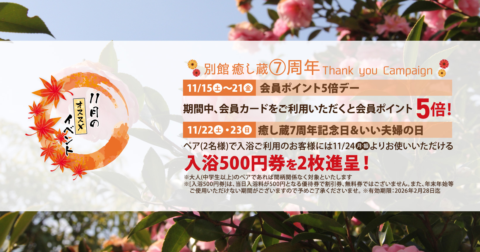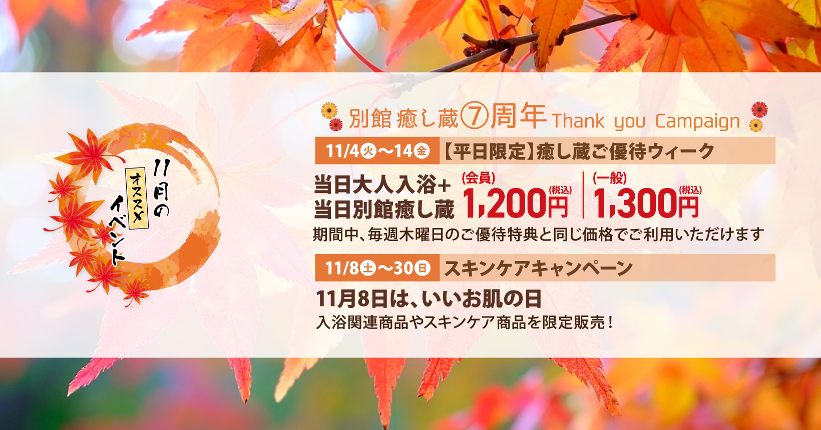 | 2025/11/04 | イベント情報 【平日限定】癒し蔵ご優待ウィーク |