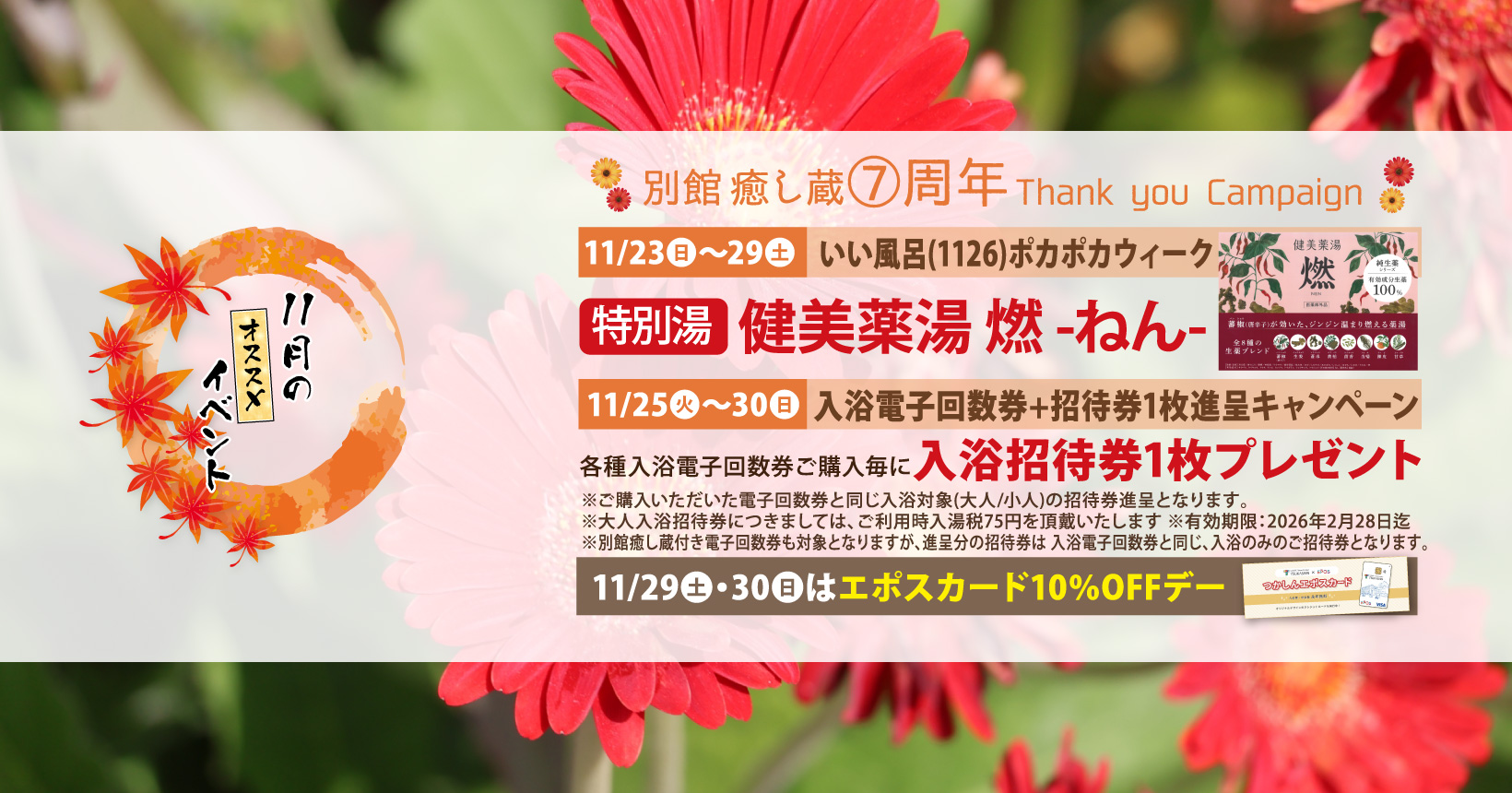 | 2025/11/23 | イベント情報 いい風呂(1126)ポカポカウィーク |