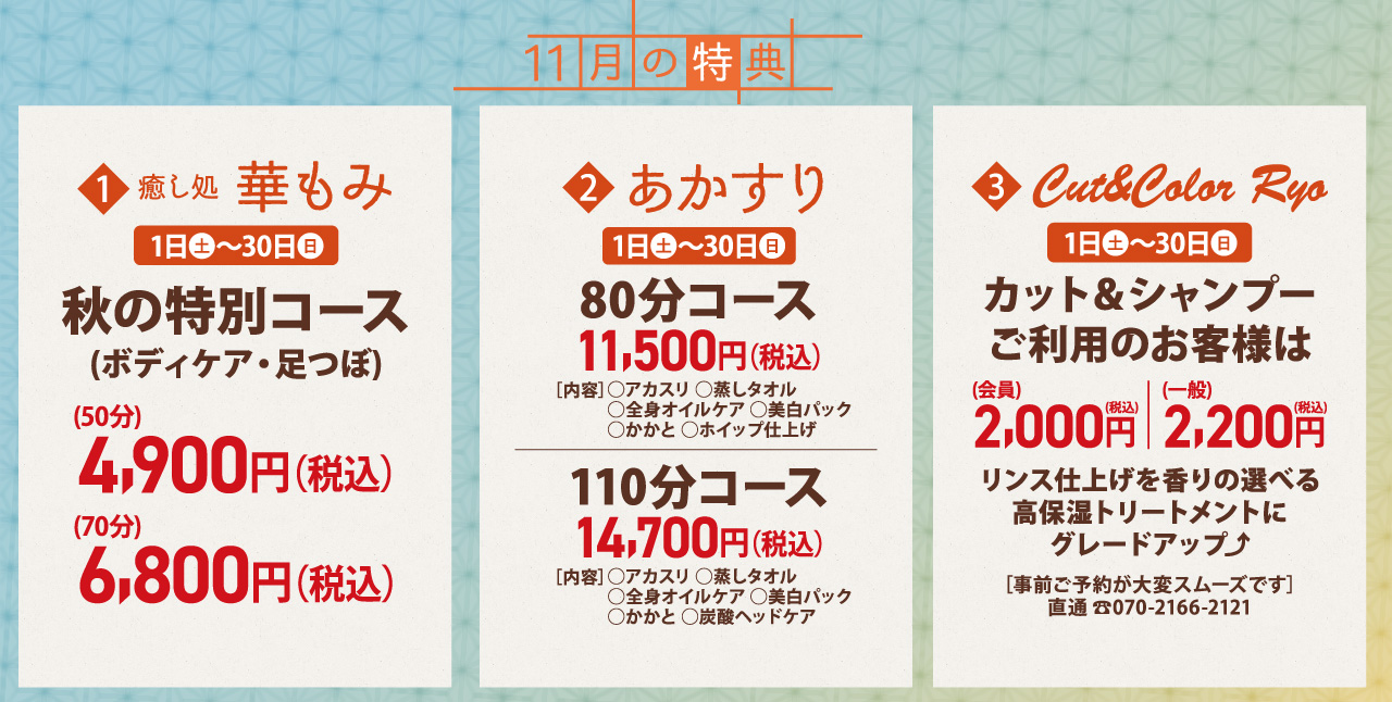 | 2025/11/04 | イベント情報 【平日限定】癒し蔵ご優待ウィーク |
