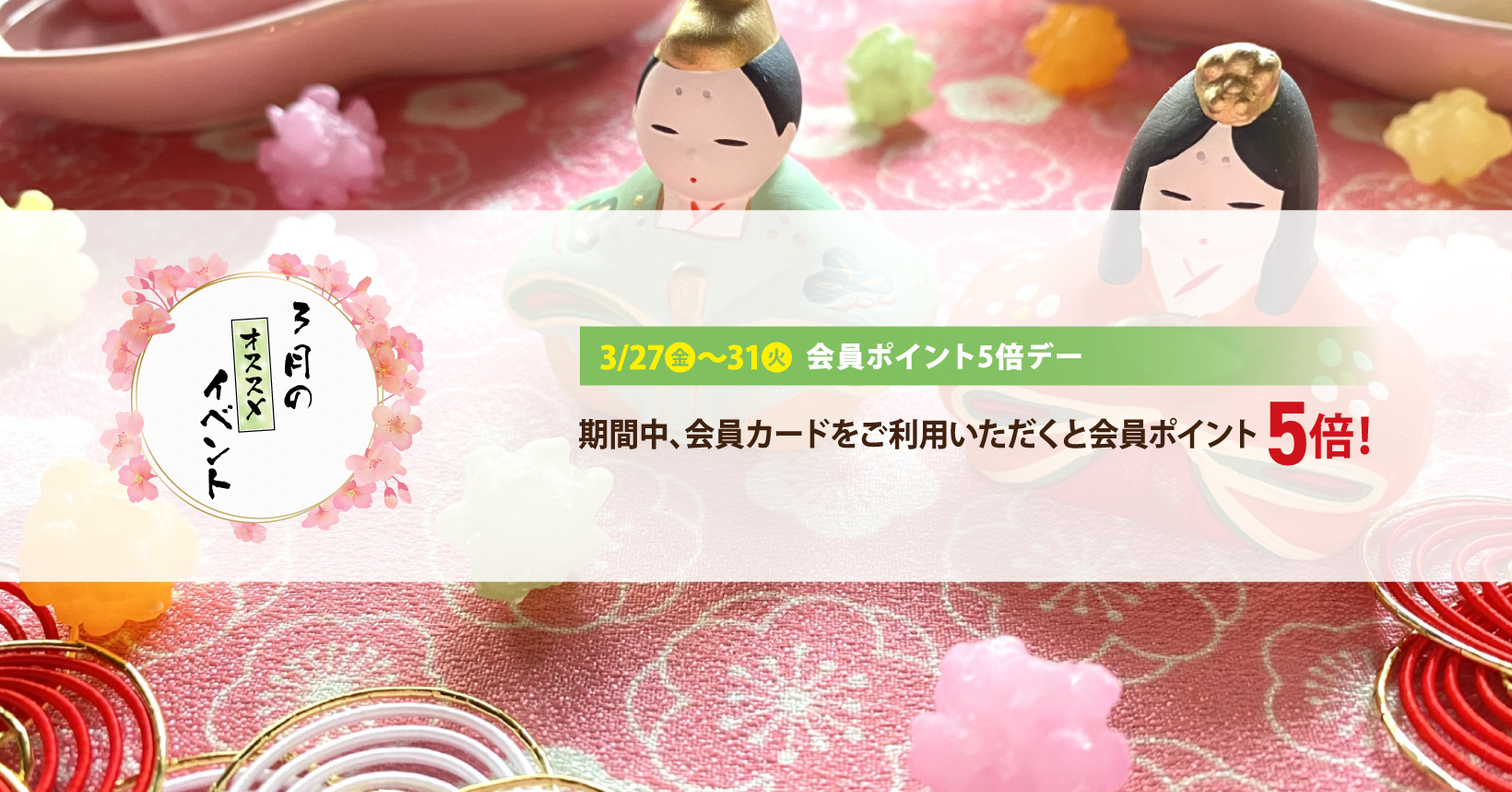 | 2026/03/27 | イベント情報 会員ポイント5倍デー |
